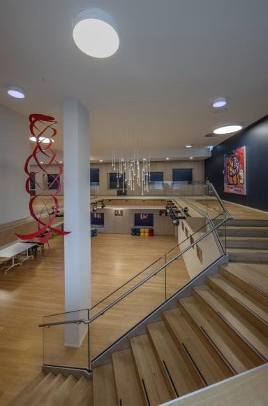 Grâce à sa diffusion maîtrisée et à sa lumière précise, A-Tube Nano assure un éclairage fonctionnel sans éblouissement, contribuant au confort visuel des usagers. Utilisée en composition, elle crée un rythme lumineux qui accompagne le mouvement et transforme la cage d’escalier en un véritable élément architectural, à la fois accueillant et scénographique.